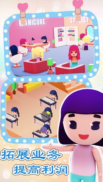 超级美容店是一款经营类游戏,玩家可以经营一家美容院来为顾客们提供优质的服务。这里的美容项目是很多的,而且每个项目都需要雇佣专业的人员来提供服务。随着经营还可以拓展店铺中的设施,并招募更多的员工,让你的店铺一步步壮大。此外这里的顾客还会为我们的服务进行评价,可以通过他们的心情很直观地看出来。
