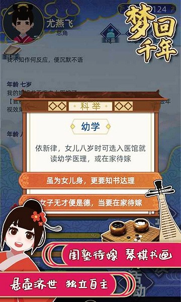 欢迎来到梦回千年,这款古代人生模拟养成游戏将带你穿越时空,体验一个真实而丰富的古代生活。游戏采用新颖的漫画风格,传统的经营模式中融入了各种小剧情故事,让你沉浸在更真实的游戏体验中。从小孩时代开始,你可以选择不同的性别、职业,成为国之栋梁、家财万贯,或是一方大家闺秀。在这里,你可以举行隆重的婚礼、打猎、蛐蛐、各种求签、种田、参加科举等等,感受精彩万分的古代人生。梦回千年2023还融入了精彩的情节展现和各种趣味冒险,如果你热爱古代文化,绝对不能错过这款游戏!