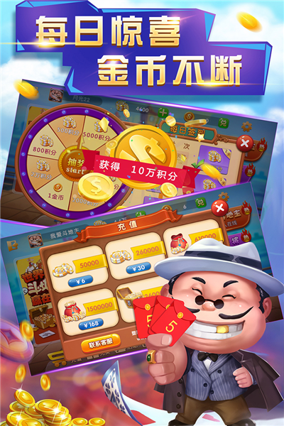 1、免费奖励:申城斗地主每日登录送豪礼,连续登录送更多,积分不足自动发放,让玩家免费打牌。