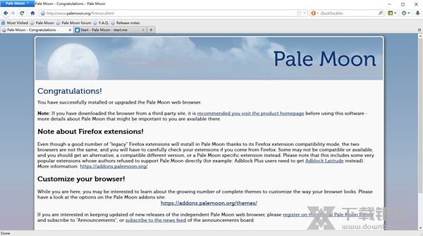 PaleMoon苍月浏览器是基于firefox火狐编译优化而成的浏览器,它在国外相当热门,主要是为提升Firefox速度而设计。但其中也添加多种firefox扩展,以使其更美观,功能更多,也更适用于新手。它的优化提高了其速度和效率,特别是有关数学和逻辑运算环节,速度很占优,三角函数计算快32%,MD5哈希测试快31%。使用 Firefox的扩展、插件等资源,都可使用。