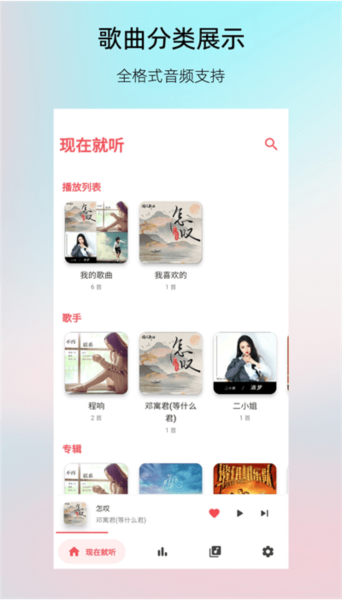·音频格式,支持所有的音乐、音频格式,海量音乐类型,都能轻松播放