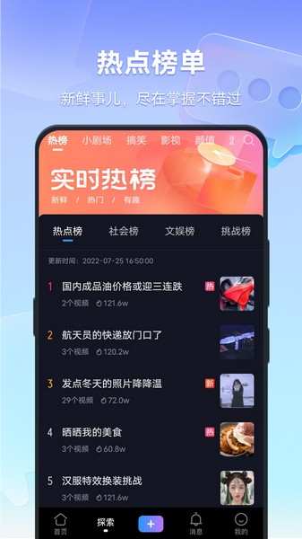 众多探索频道:颜值、搞笑、游戏、美食…总有一款适合你。
