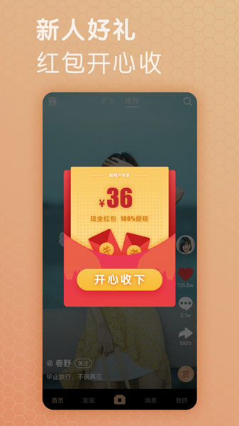 实时更新热门精彩视频,精准推荐你感兴趣的,新用户直接送红包奖励。