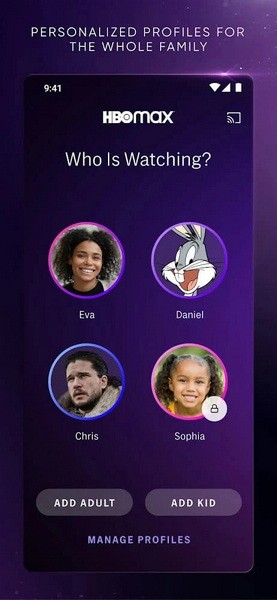 个性化的流媒体体验,最多可包含五个查看者个人资料。
