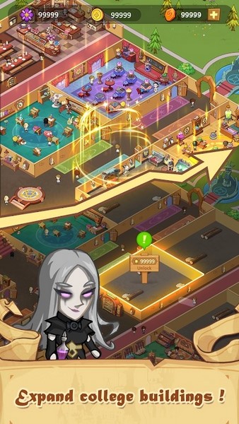 - 即使不启动游戏,你的学校也会自动运行,为你赚取离线收益,随时随地建设世界上最好的魔法学院!