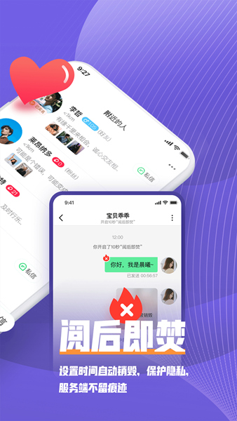 保护隐私,服务端不留痕迹,设置时间自动销毁,无需担心照片与聊天内容外泄,尽管放心大胆的聊