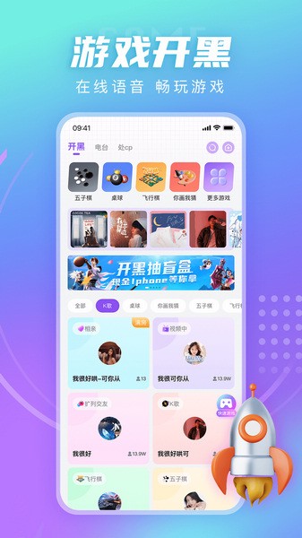 语音聊天:超高质量连麦语音,用声音陪伴你左右;