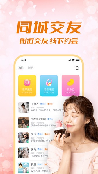 智能推荐优质单身异性,让你快速遇见ta,不管热聊闲聊,探附近爱聊的人,开启零距离语音聊天交友