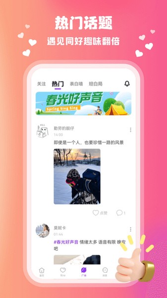 给你纯粹的聊天交友环境,在这里,你会发现声音动听、风趣幽默的阳光boy和宝藏girl,喜欢就去认识ta们。