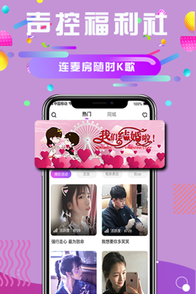 久久语音是一款主打在线语音聊天的软件,若是一个人呆着无聊,那么不如使用这款软件寻找好友吧!其汇集了来自全国各地的小伙伴在线语音聊天,在这里好声音才是王道!且无论是游戏开黑、语音聊天,还是互动交友等都随你心意!同时用户可以选择和心仪的TA私人畅聊,或者加入多人语音房,和其他小伙伴尽情互动,让你拒绝孤单!