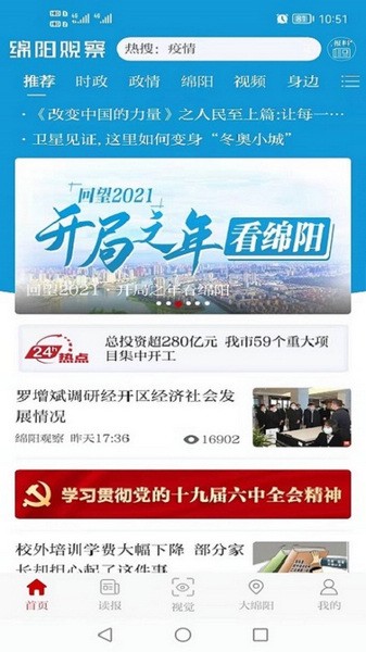 2、新闻:绵阳本地最新最热新闻资讯,包括头条、时政、县市区、热点、社会、人文、视觉、旅游栏目。