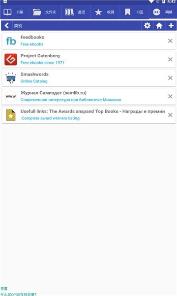 适用于Android设备的电子书阅读器; 它支持以下格式:PDF,EPUB,EPUB3,MOBI,DjVu,FB2,TXT,RTF,AZW,AZW3,HTML,CBZ,CBR,DOC,DOCX和OPDS。