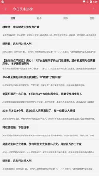 4、小编以今日头条为例子,进入之后,大家可以查看到最新的头条资讯,走在吃瓜的第一线。