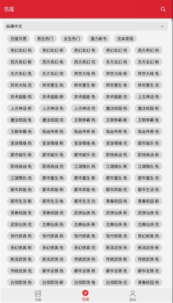3、选择阅读源,点击一下会弹出书籍分类,选择分类进入。