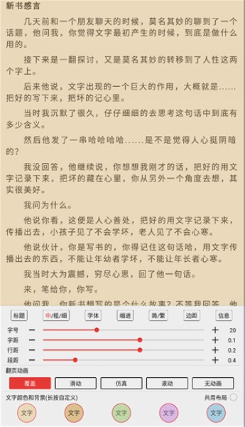 6、强大的阅读器,各种翻页模式,支持字体大小等功能,阅读流畅。