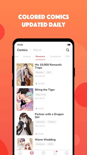 除此之外,MangaToon的功能非常强大,不仅有海量的漫画资源,还有小说阅读和创作功能,用户甚至可以将自己的故事上传分享。软件界面设计简洁,操作起来也很方便,特别是单手追漫的设计,非常适合手机阅读。