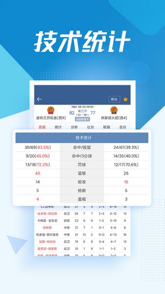 2、足球比分直播,篮球比分直播,NBA文字直播,动画直播,比赛直播,动态数据全面展示;