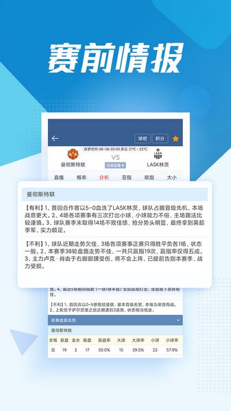 4、赛事即时数据,首发阵容情报,伤停情报及比赛前情报资讯。
