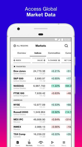 -市场数据:有关您的可定制投资组合并针对您所在地区进行个性化设置的最新市场数据,包括股票指数,期货,债券,商品和货币。