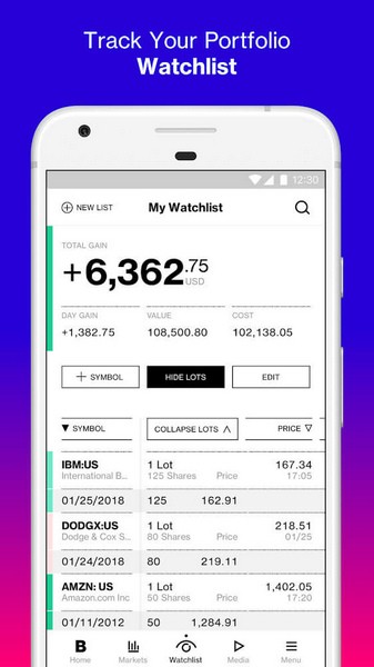 -监视列表:通过将证券(股票,共同基金,ETF,货币等)添加到您的个人监视列表中,轻松跟踪您的投资组合。