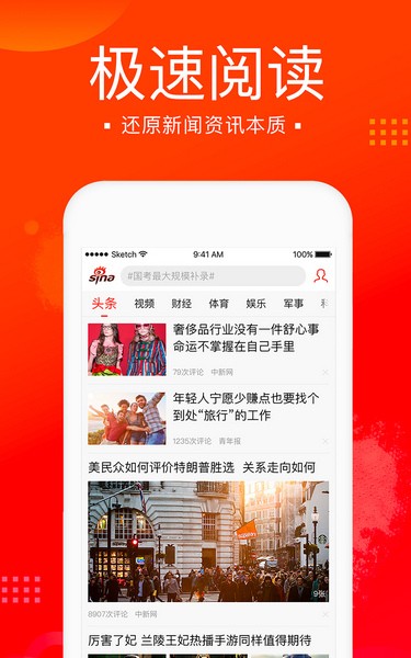 新浪新闻极速版安装包是新浪新闻app的极速浏览版本。这款软件相较于一般的版本要更加的小巧简洁,专注于新闻资讯的传播,精简了其他的功能,加载速度更快,让用户拥有更加舒适的新闻阅读体验。软件整合了新浪网各个系列产品中的新闻资讯报道,将所有的信息整理在一起,用户可以查看到每个新闻的热度,在榜单上看到实时的热度排行。用户可以在新闻报道文章的评论区留下自己的意见看法,可以与其他的用户展开激烈的争辩,也可以与博主进行互动,有诸多知名大咖会在平台上与粉丝观众进行互动。同时,软件还搭配了强大的搜索功能,用户可以通过输入关键词来查找所有与这个词相关的资讯报道,根据热度或者时间的顺序来排列,文字、图片、视频等,还可以订阅喜欢的媒体号来获取最新的资讯。