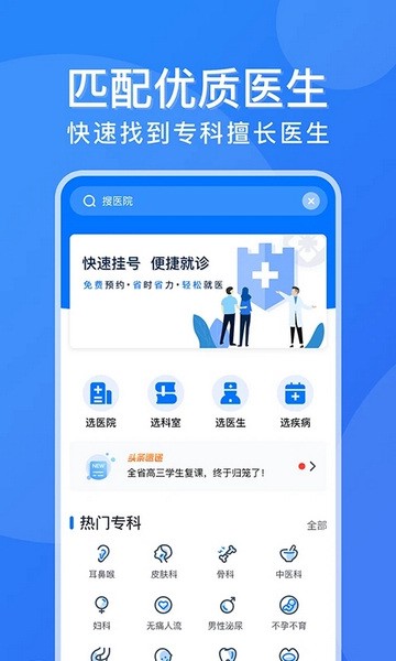 选择满意的医院与医生,在线即可直接挂号