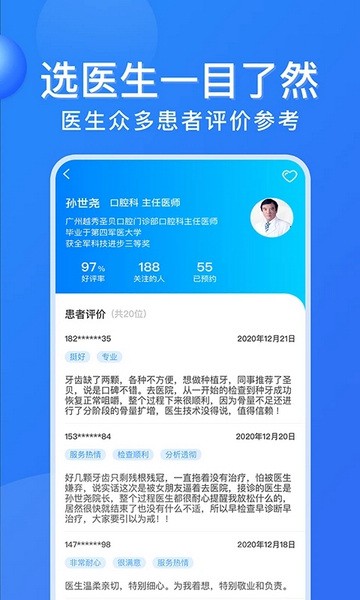 挂号之前能够自由的挑选医生,三甲医院的专家医生号源都能及时预约;
