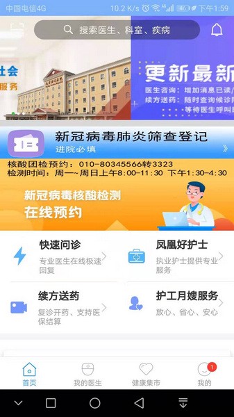 北京燕化医院app是一款专为患者们打造的在线预约挂号和线上问诊的医疗服务软件,依托北京燕化医院,能够为大家提供专业可靠的服务。软件集问诊、挂号、就医等多项功能于一体,大家还能够在线预约核酸检测。此外便捷的复诊开药和护工月嫂服务可以让大家的治疗康复更加方便,患者们也能够在健康集市中了解自己的身体健康状况和阅读更多健康养生知识。