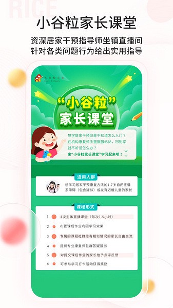 大米和小米是一款专为自闭症儿童设计的康复软件,提供丰富的指导课程和在线资源,让家长在家也能对孩子进行训练。app内还有大咖直播、成长测评等功能,帮助家长更好地了解孩子的发育情况,并提供个性化的干预方案。此外,平台还汇聚了大量自闭症相关的知识和专家资源,为家庭提供了全方位的支持。