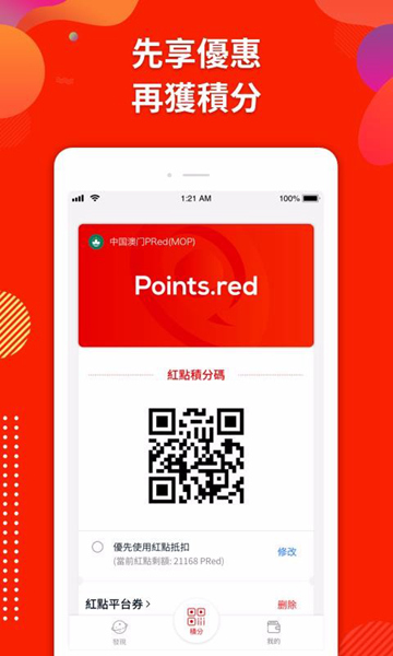 4、随时出示自己红点积分码,门店消费可以刷码享受优惠