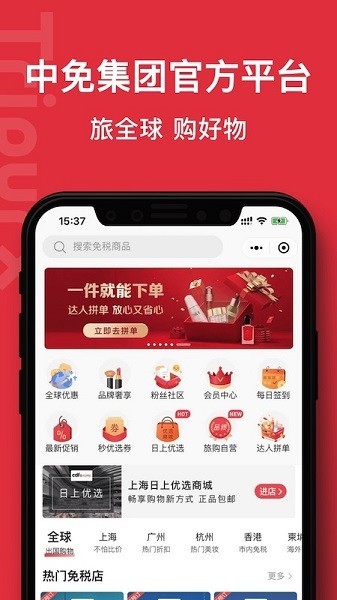 中免日上旅购app是一款由中免集团打造的线上免税购物平台,软件内为大家提供了超多来自全球优质的商品,在这里大家可以购买化妆品、护肤品、营养保健品等等,并且在这里购买海外产品是不需要收取税费的,软件目前支持上海日上免税、海南、北京、广州、杭州等全国机场免税店预订提货,并且还为大家提供了许多优惠券,使用起来非常简单且划算。