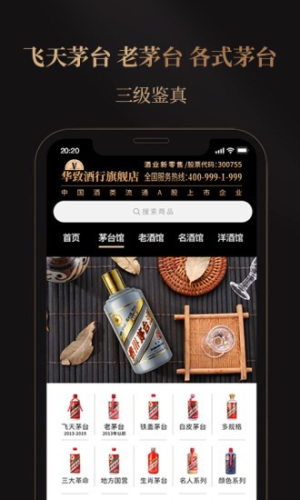 华致酒行旗舰店app是一款有着超多名酒好酒的购物平台,设置有老酒、洋酒以及名酒等诸多分类,囊括了茅台、五粮液以及汾酒、威士忌等等,可以轻松满足大家的酒水购买需求。软件致力于为大家提供了一站式的购酒服务,使用也非常的方便,只需要将多个目标商品添加到购物车中就能够一键下单,之后等待送货上门就可以了,非常方便。