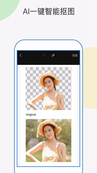 2、人像智能识别,进行人像抠图的时候能够自动识别图中人像部分;