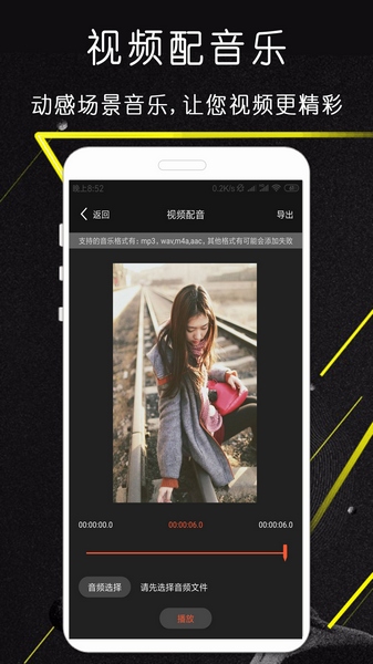 5、视频配音:可以为你的视频配上好听音乐,本地的也可以
