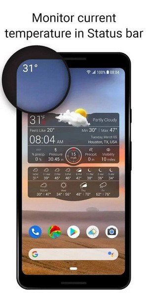 - 可调节的天气小工具,查看基本信息或更多信息. 在小工具设置中选择您希望显示的天气参数