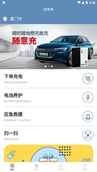 这个App的功能挺多的,比如你可以直接下单或者预约充电,还有扫码充电的功能,扫一下就能开始充了。软件还会告诉你所在位置是不是在服务范围内,这样你就不用白跑一趟了。