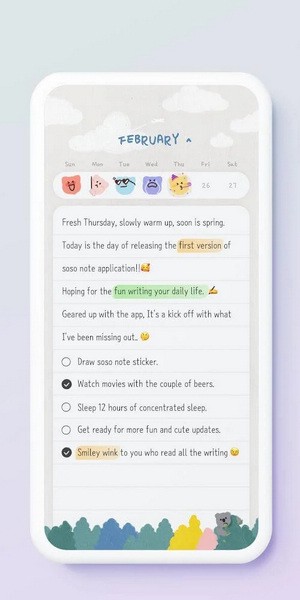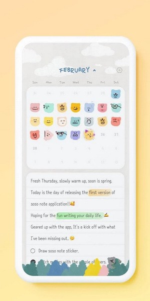 soso note是一款温馨治愈的可以记笔记的app,拥有海量功能,不光可以记笔记还可以画画哦,就像写手账一样,可以使用不同的贴纸进行装饰,满足你的少女心,感兴趣的小伙伴快来下载吧!