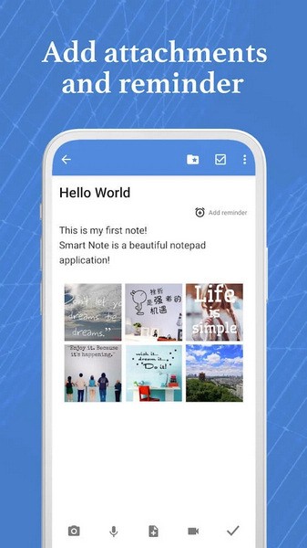 Smart Note 是一款高效、简洁的记事本&备忘录,可随时随地记录您的想法、待办事项。您可以使用 Smart Note 管理您的日程安排、待办事项、奇思妙想。