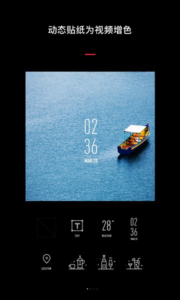 - 从天气贴纸、位置信息到表达各种场景的贴纸,适合各种内容的视频编辑与拍摄