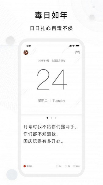 你甚至不用打开日历,打开App的推送,每天会定时送上一杯毒鸡汤。