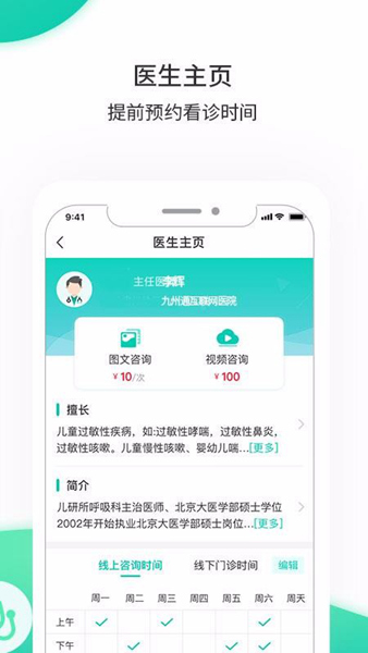 1、进行个人资料设置,添加医生专业、简介等内容,制作医生个人名片;