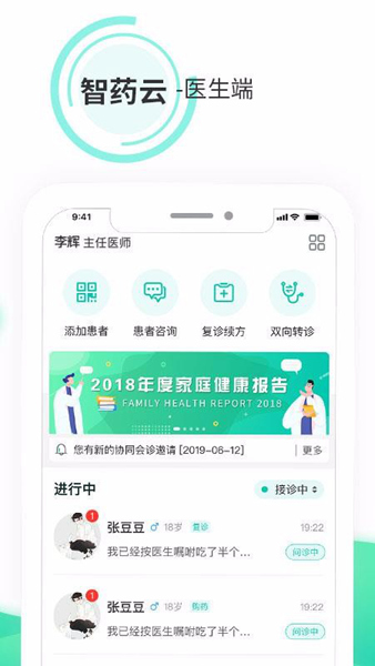 万家云医是一款专为医生打造的一款移动看诊平台,其可以帮助医生随时随地在线接收患者的咨询,并支持通过视频、文字等方式进行互动咨询,为医患之间提供一个更好的线上交流平台,并支持通过软件添加各位患者的信息,打造患者资料库,以便患者再次咨询时可以快速找到对应资料,以便快速提供医疗!且用户还能通过软件实时和患者进行联系,以便查看患者是否完成疗程,非常实用!