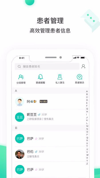 2、高效管理每一位患者信息,还能利用创建的患者分组进行管理;