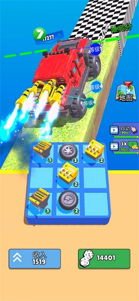 2、玩家可以通过投掷骰子来获取汽车配件来给汽车升级;