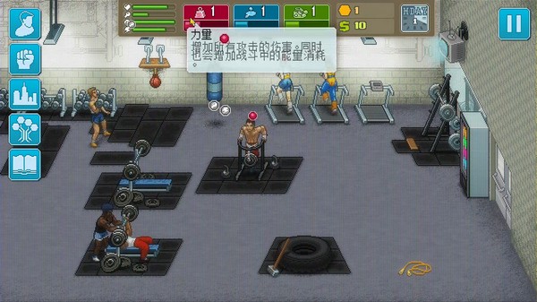 这个时候力量13点,实力已经比较强了,联赛和地下拳赛胜率80%左右。每隔2天,固定找健身房阿银对打,获胜得2到3点技能。