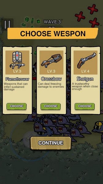 2.收集材料来获取升级经验,并在敌人的浪潮中从商店中获取物品;