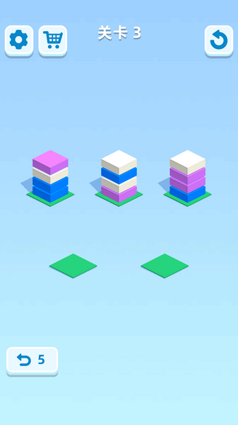 游戏里的特色很明显,首先要把相同颜色的方块放在一起才能组成大楼,这需要玩家动脑筋找技巧。其次,合理规划方块的位置也很重要,毕竟目标是把大楼建得又高又好。关卡解锁后会出现更多颜色的方块,挑战性也会随之提升,这时候就需要靠智慧来完成任务了。