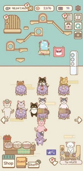 2、丰富剧情解锁:多样剧情玩法交织,邂逅不同品种猫咪员工,触发新奇故事,开启充满惊喜的经营之旅。