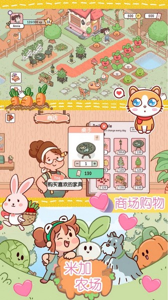 米加迷你农场游戏是一款有着卡通画风的农场经营游戏,不仅有着非常精彩经营和种植玩法,玩家们还可以将收获的作物再加工和制作。这里还有超多可爱的家居用品,各位农场主们需要尽可能收集足够多的金币来购买和兑换。精彩的剧情故事和欢快的种植内容,大家也可以开垦空地,扩大自己的种植面积,享受休闲有趣的田园生活和田园乐趣。