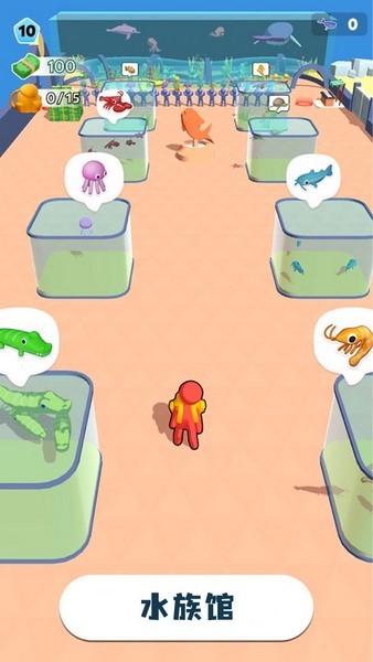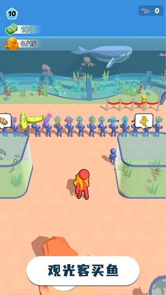 你漂流到一座神秘的小岛,岛上封印着一些独特的水族馆,从摸到第一条鱼开始,逐步建起整个水族馆特色岛屿。你需要在水族馆中放上水族箱,水族箱中还需要引入鱼类才能吸引到顾客,你可以去探索海域,捕捉一些海鱼、虾、蟹以及各种神秘物种放置在水族箱中。鱼类太多而水族馆位置不够时,你还可以对水族馆进行扩建,力保所有海鱼健康成长!